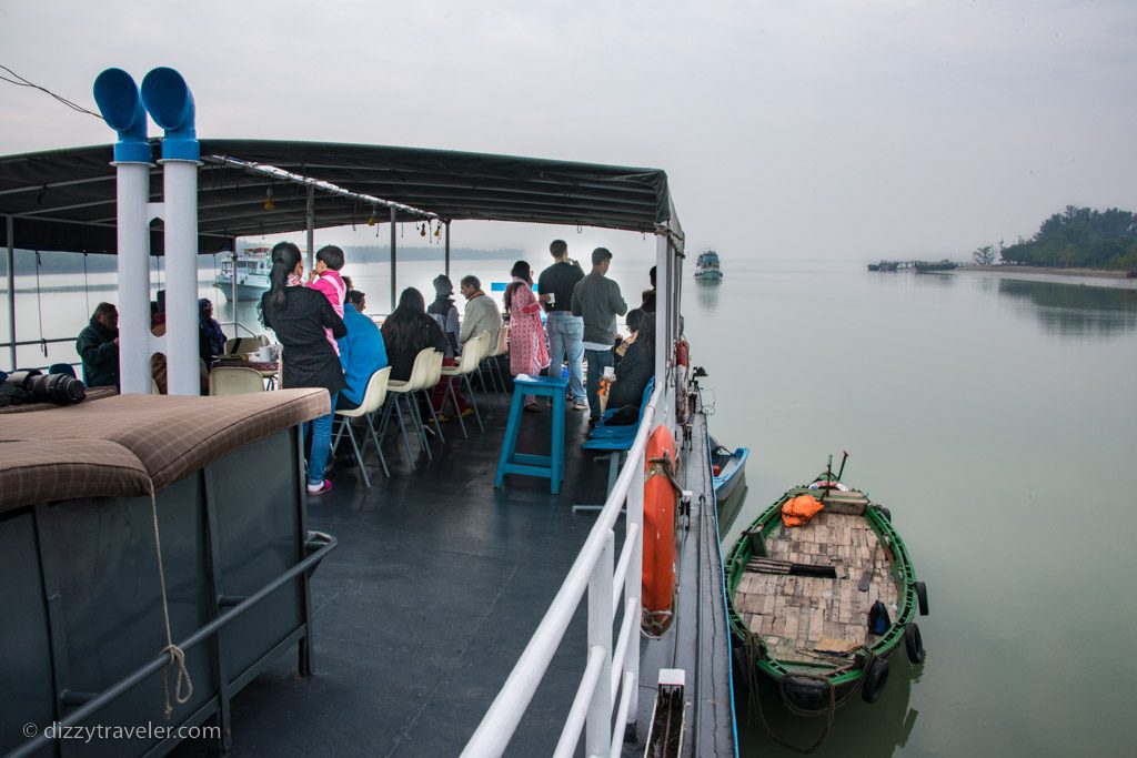During my Bangladesh Sundarbans Forest trip, I stayed on a boat called BHELA for two nights and three days, operated by The Bengal Tours. BHELA got 11 cabins providing accommodation for our 26 family members. A family gets-together trip organized to meet family members after many years and be in a place where there will be only us, away from the business, and could see spend quality time together and, most importantly, with no internet connection. BHELA also got a seating room cum lounge in the front end of the main deck, where 15 persons sit together to take meals or have fun, in our case, family fun. It was a great first-time experience spending overnights on a ship in the middle of a jungle. They even shut down the generators after sunset to retain the silence of the forest; the only available light source is from UPS (I guess)