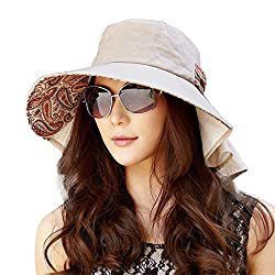 Siggi Womens Wide Brim Summer Sun Flap Cap Hat Neck Cover Cord Cotton UPF 50+ Coffee