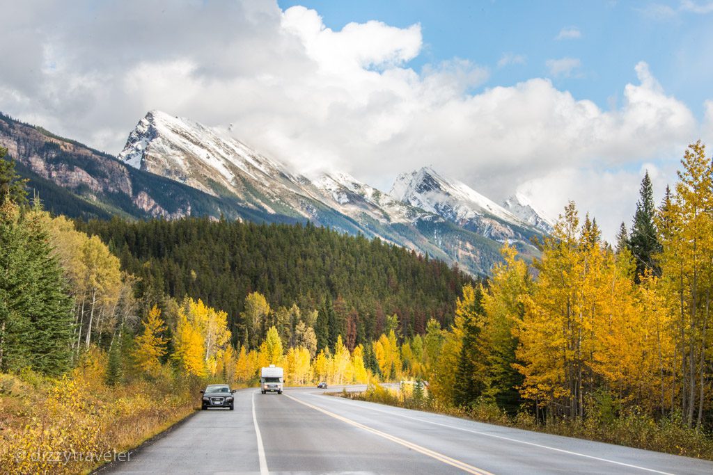 What I have noticed in the Canadian Rockies is that the weather changes so drastically based on where you are. We saw sunshine and a moment later moving to another location had to deal with snowfalls or even rain. So, just be prepared for anything that may surprise you. A perfect example is below: