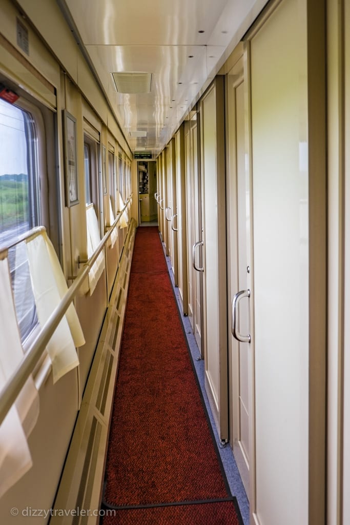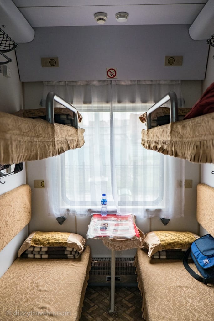 Firstly, the trains are huge! The carriages are divided into separate compartments (like rooms) which are 4 berth sleepers (2 berth if you go for 1st Class). Within the carriages, the compartments are set up with 4 bunk beds that fold out into chairs for daytime use. Bags can be stored inside the bottom beds or in a designated luggage ledge at the top of the cabin where the upper bunks are. There is a little table for playing cards and eating meals. Comfy, warm bed pillows, duvets and linen are all provided to keep you warm during those chilly night time journeys. The best bit about your cabin is the large window that gives amazing views of the outside world as you travel.